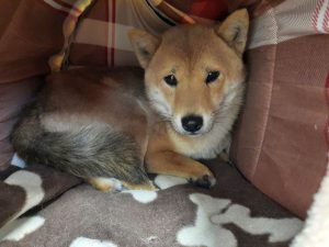 Die kleine ausgesetzte Shiba Inu Hündin ohne Pfoten in der BDT-Tierherberge Kamp-Lintfort genießt jetzt nach den ersten großen tierärztlichen Untersuchungen die Ruhe in ihrem Körbchen. Ausgesetzt wurde sie in der Nacht zum Montag in einer Transportbox in Moers.